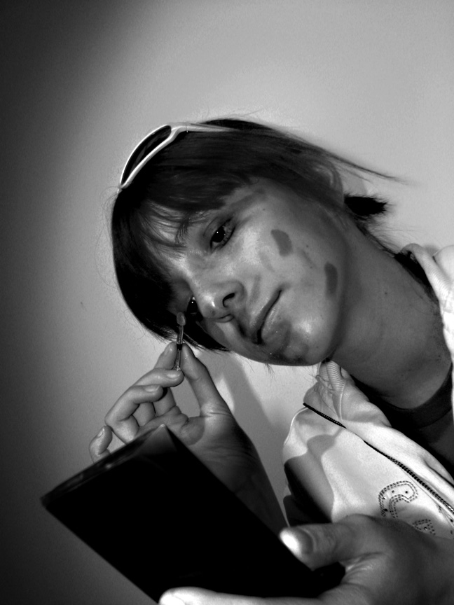 Mah, non sò se mi piace....il taglio non mi fa impazzire, sembra una immagine ORIZZONTALE girata in VERTICALE...il nero della vignettatura che si vede a sinistra, non ci stà bene qui...il NERO invece mi piace, ecco!