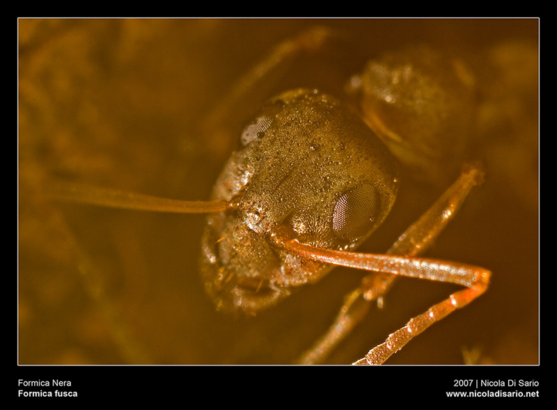 la patina direi che deriva da 2 fattori .. la perdita di contrasto causata dal teleconverter (prima o poi provero' ad intubare l'mpe ) e il riflesso della luce del flash .. questa era proprio all'imboccatura del formicaio e nella terra ci sono tanti granelli di sabbia, che penso facciano un po' come uno specchio ... è una problematica neanche da poco, che mi è servita a capire che devo cambiare la terra nel formicaio che mi sto costruendo ( sto facendo un formicaio in sezione per provare a fare un "reportage" della vita quotidiana delle formiche ) è da tanto che voglio fotografare le formiche, per me in assoluto gli insetti più interessanti per tanti fattori  _________________ www.nicoladisario.net |