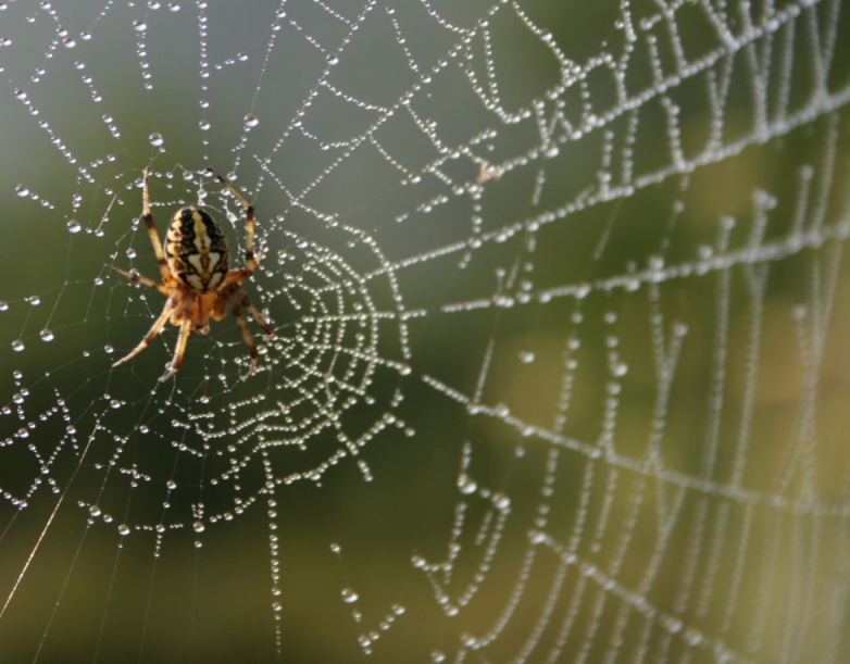 La foto è bella per come hai decentrato il ragno e le gocce d'acqua rendono piu spettacolare la ragnatela senza dimenticare lo sfondo, ma no potevi aumentare di piu la pdc? è tutta sfocata!!! Non te la prendere io voglio farti capire cosa non va secondo me in questa foto.