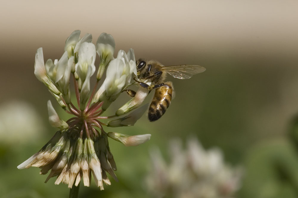 Bella l'ape, bello il fiore e bello anche lo sfondo Ok!
