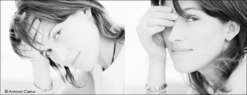 Bello anche il taglio, e le inquadrature che hai scelto.. La mia preferita è quella di destra, in cui si copre l'occhio..e quel ciuffettino le accarezza l'altro..
