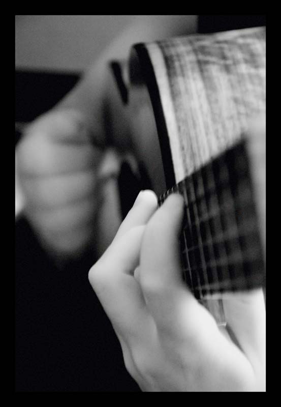 L'idea è buona e la scelta delle inquadrature ravvicinate suggerisce esattamente la concentrazione che si crea facendo musica, appunto. Un paio di appunti soltanto: nella 2 e nella 5 le parti fuori fuoco sono troppe rispetto a quelle a fuoco. Nella 2 anche la mano, nella 5 anche la matita e tutte le note?