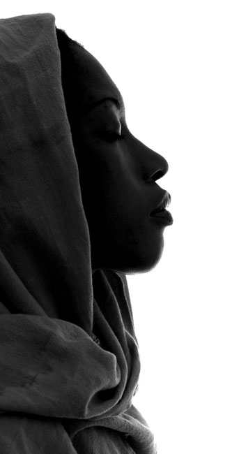 Il bianco nero ha neri profondi e mezzi toni capaci di rendere con sottili gradienti il tono scuro dell’incarnato così come le ricche pieghe del panneggio sulle quali scivola come un velluto quel filo di luce che le stacca dalla pelle del volto.