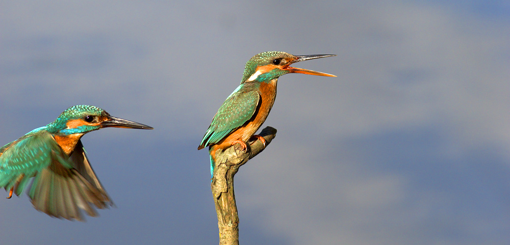 Incredibile la definizione dell'immagine,l'illuminazione molto dura,direi di un flash, ha generato delle ombre molto profonde..... peccato veramente per la coda dell'uccello in arrivo. Perfetta la pulizia della compo,scongiurata la centralità/staticità grazie all'arrivo del secondo pennuto. Cattura INCREDIBILE. ( mi viene da pensare all'uso di una trappola......)