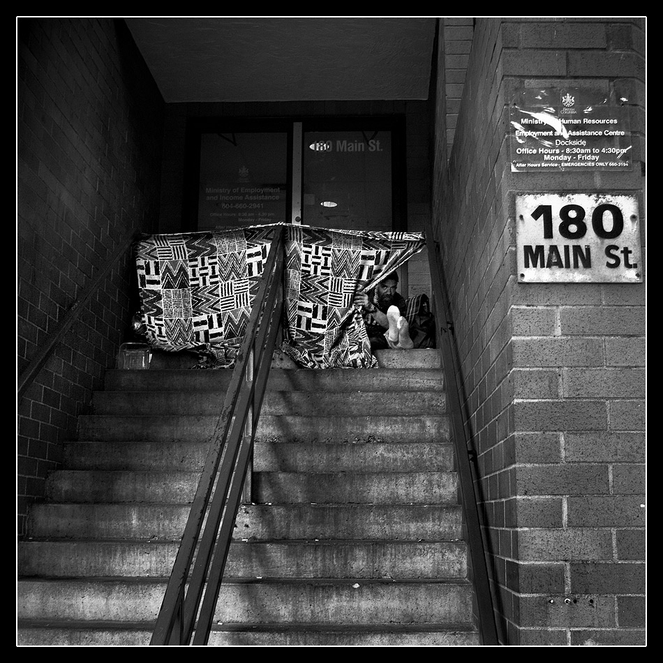 tra l'ironico,il partecipe e il serio, uno scatto a mio avviso riuscitissimo; la scalinata guida l'occhio fino al protagonista: un racconto in una foto;