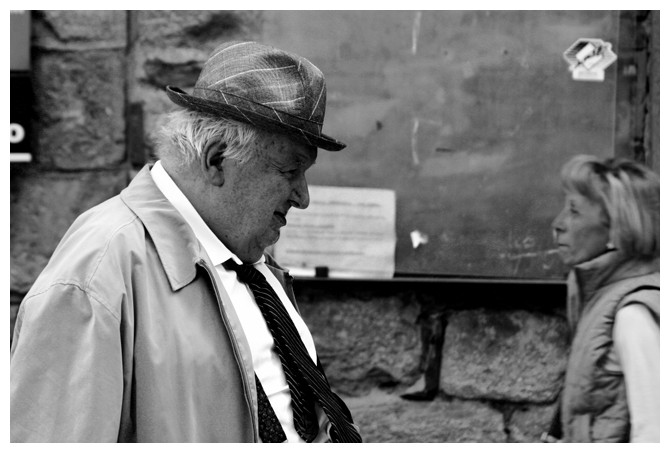 Per dirla con una battuta, la foto mostra due passanti che si incrociano per strada...non si vede alcun motivo per cui dovrebbero fermarsi a dialogare...