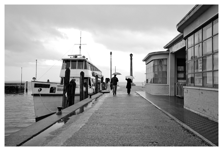 Categoria a parte l'immagine mi pare gradevole. Un pò dispersiva a sx, quel "buco" d'acqua, a mio avviso, avanza e lo taglierei(poco importa se la diagonale non parte esattamente dall'angolo). Le persone purtroppo, cosa non da poco, impallano i lampioni sottrando un pò di pulizia all'immagine.