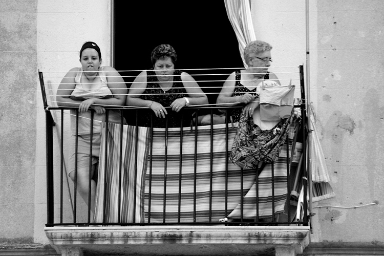 Nonna , mamma e nipote a guardare la gente che passa e mi pare di intravedere il papà seduto davanti alla tv!