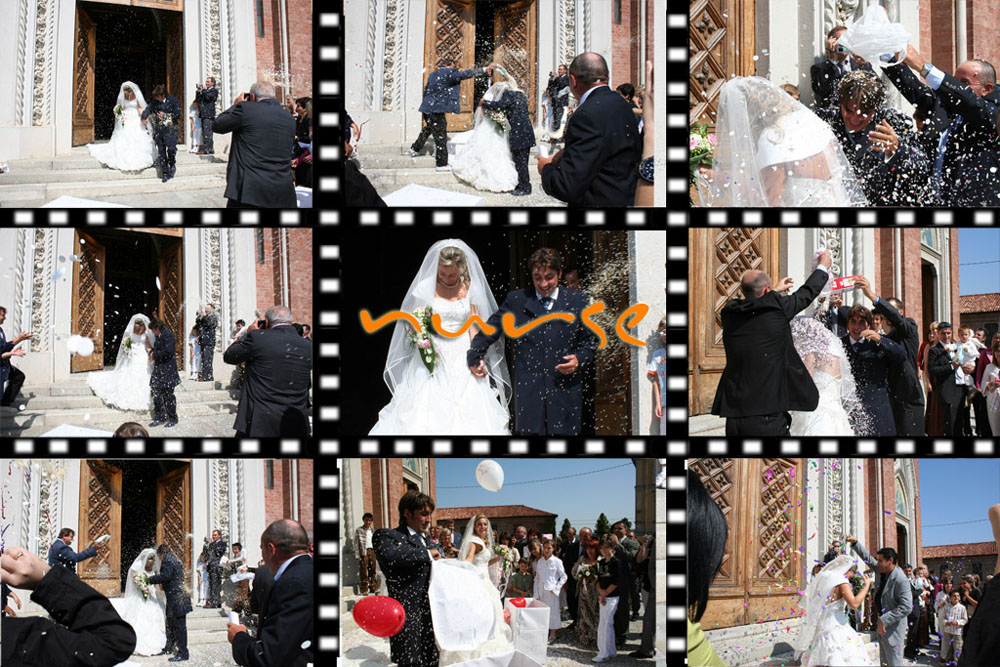 il racconto fotografico dell'uscita dalla chiesa e conseguente pioggia di riso mi pare ben reso, quelle che trovo fatte meglio sono le tre più in alto, quella al centro non è male.... però patisce della firma