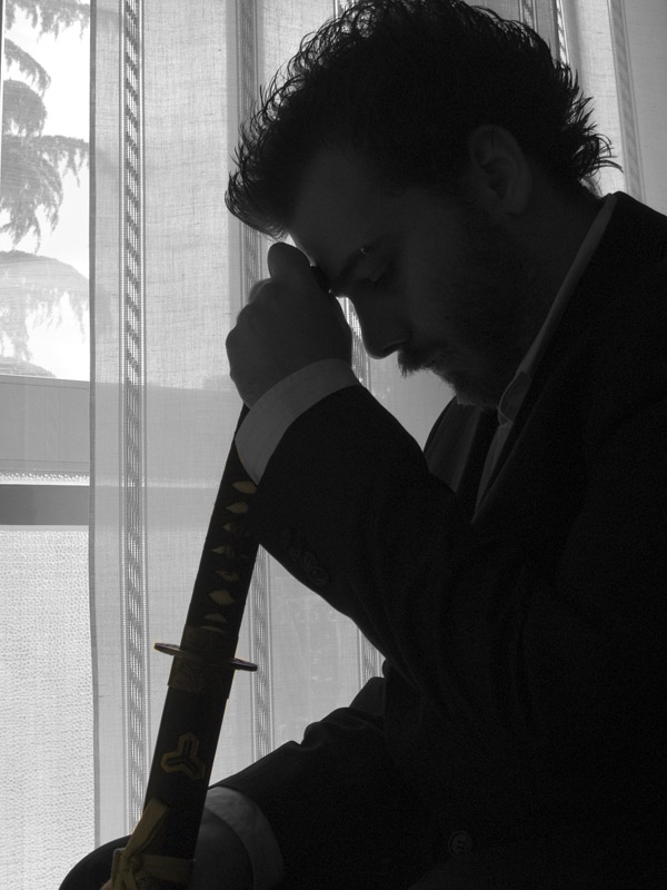 Un piccolo autoritratto con una riproduzione della katana della "sposa" di Kill Bill.