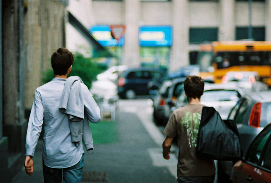 Due soggetti di spalle che camminano lungo un marciapiede cittadino difficilmente riescono a raccontare qualcosa di significativo. O per meglio dire, l'aspetto narrativo dello scatto viene lasciato interamente alle libere suggestioni dell'osservatore il quale, in base al proprio grado di fantasia (o a quello che si è fumato.. ), potrà vederci qualcosa, come anche non vederci niente....