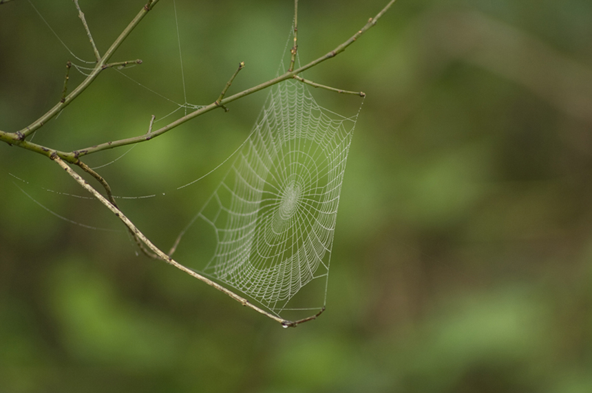 Il fuoco sul ramo a sinistra invece mi convince poco... non perché il soggetto principale, la ragnatela, è fuori fuoco, quanto perché cade su un punto difficile da trovare viste le dimensioni esigue del ramo stesso.