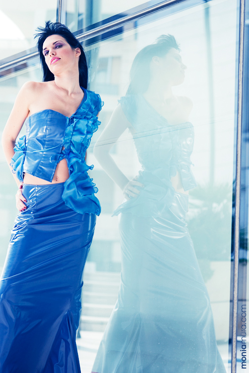 L'immagine pare pendere leggermente a destra e il taglio troppo aderente alla modella finisce per sfiorare il braccio della ragazza... un passo in dietro avrebbe giovato.La tonalità della pelle mi pare un pochino freda,ma direi che è un'effetto ben inserito nella costruzione della fotografia.