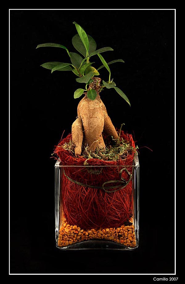 molto belli i colori...ottima anche l'illuminazione...sento la mancanza di un pelo di nitidezza sulle foglie...e...forse avrei preferito vedere un appoggio sotto il vasetto...così mi sembra galleggiare nel vuoto...