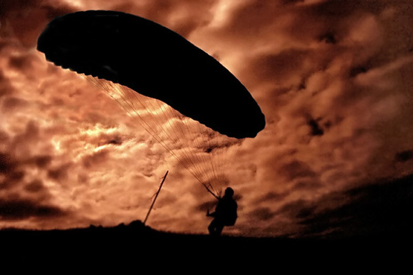 grande fascino questo scatto e grande forza. Le nubi, la postura dell'uomo che sembra far da tramite tra la la terra ed il cielo. Lo sguardo dell'uomo verso l'alto ed il suo volo che sta per iniziare.