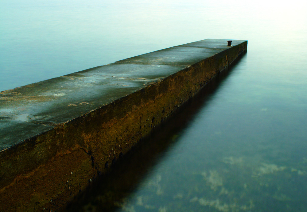eccezionale in tutto, l'acqua che sembra un foglio un po' sporco, la sovraesposizione in alto a sinistra, il pontile desolato che vi converge!