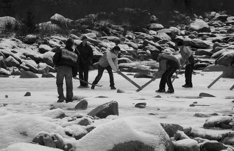 In particolare, basta un fiume ghiacciato, 2 bastoni e un sasso per improvvisare una partita di hokey su ghiaccio.