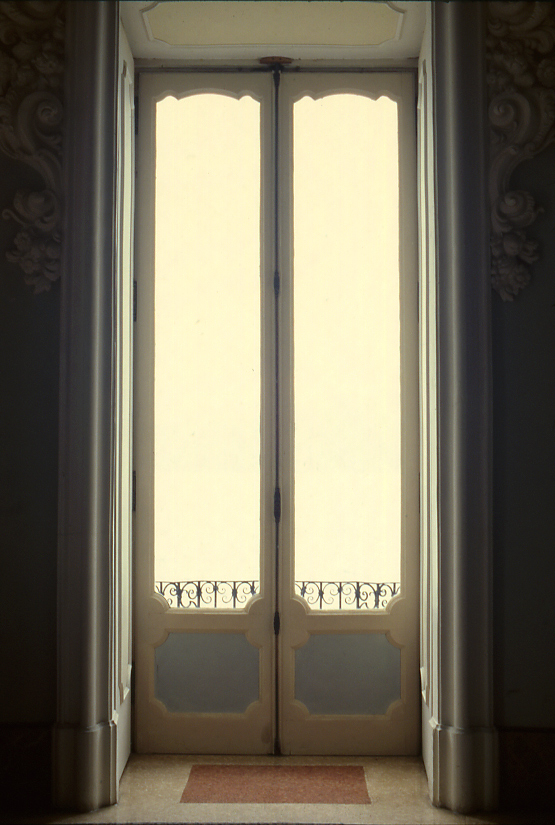 La luce esterna era una luce estiva di sole pieno ma visto l'ampiezza della vetrata su cui però non batteva in maniera diretta la luce perveniva una qualità di luce molte dolce e ovattata. Per far si che si leggessero i bordi in legno e gli stucchi in gesso ho sovraesposto sicuramente almeno di un paio di diaframmi rispetto alla lettura dell'esposimetro. Ecco il risultato.