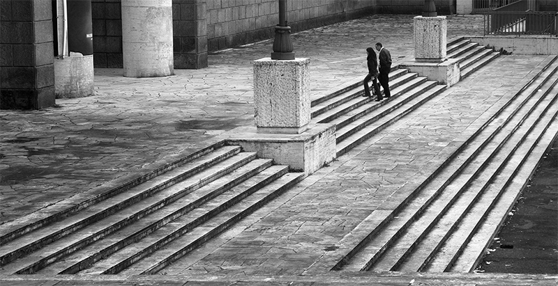 forse un taglio quadrato soffermandoti sulle persone e le scale sarebbe venuta meglio ma non so se avrebbe reso il senso alla tua foto visto il titolo molto particolare....