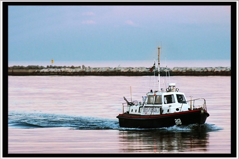 I colore azzurro rosa, pastellato e tutto sommato romantico dell'insieme collegato al natante delle forse dell'ordine mi strappano un sorriso... benevolo naturalmente.. nel senso che non c'è bisogno del Moro di Venezia o della barca a vela all'ultimo grido per avere una foto marinara più che carina all'ora del tramonto....
