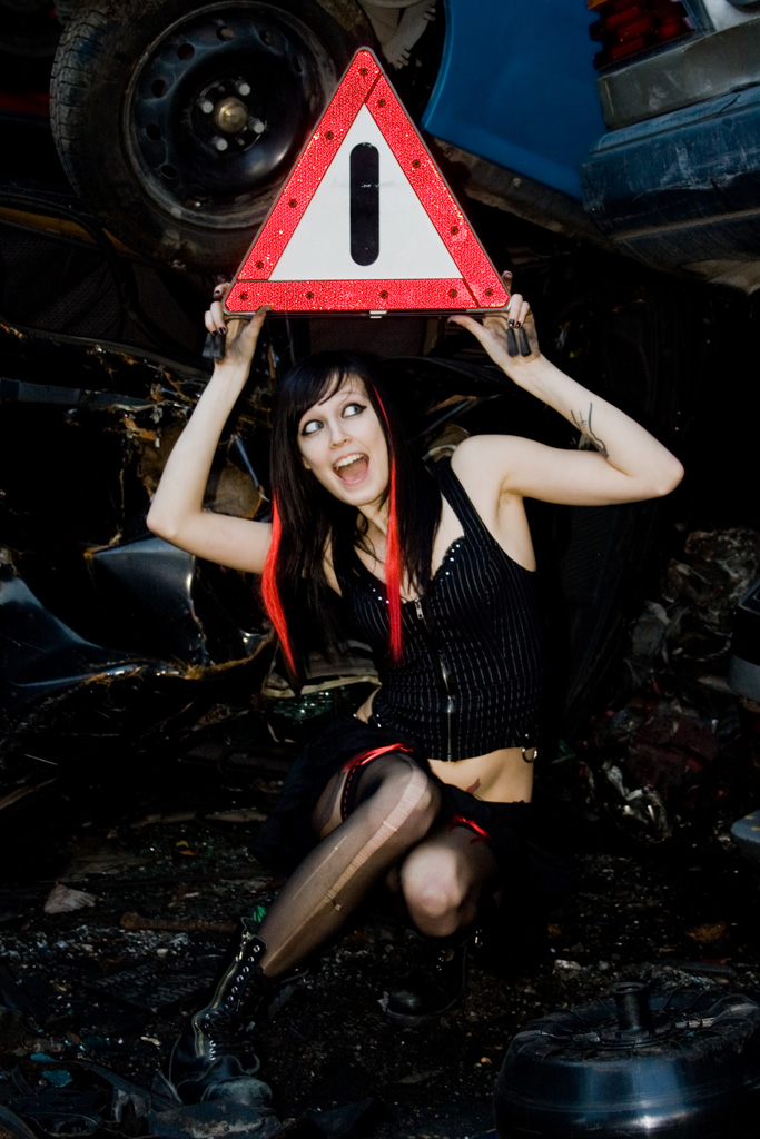 All'inizio volevo contrapporre lo sfasciacarrozze alla modella vestendola stile lolita con un abitino colorato e piu leggero ma poi non ce l'ho fatta coi tempi e l'ho vestita con quello che avevamo, conservando pero la location e qualche idea che avevo maturato a monte.