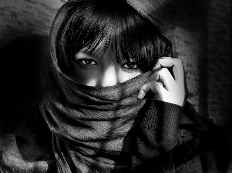 Ho lavorato di burn e dodge tool per schiarire alcune zone come la mano e scurire le ombre, poi dopo aver fatto una selezione ho copiato l'occhio destro e una volta flippato l'ho incollato sopra al sinistro che non rendeva proprio bene; utilizzando il timbro clone per "amalgamarlo" con lo sfondo.