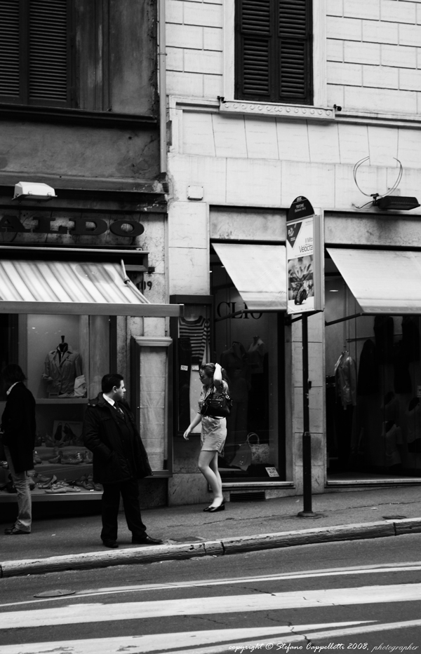 Molto bella questa street. Lui che guarda con insistenza e lei che si atteggia da vamp.