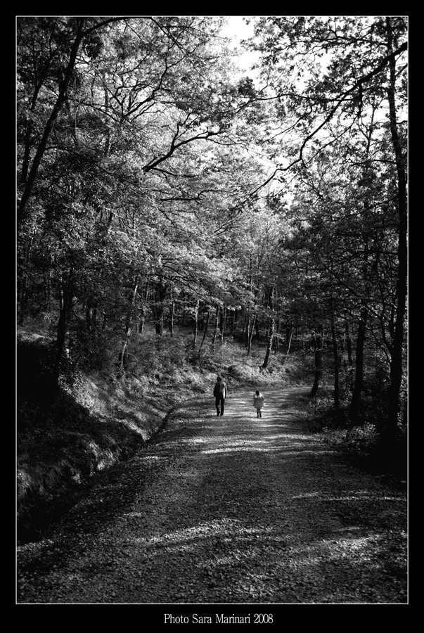 Mi piacciono molto le tonalità di bianco e nero chiare sulle fronde degli alberi. Forse io avrei tagliato la parte inferiore della strada, lasciando le due presenze umane poco sopra il limite inferiore del fotogramma. In ogni caso un classico, ben affrontato  _________________ Simone |