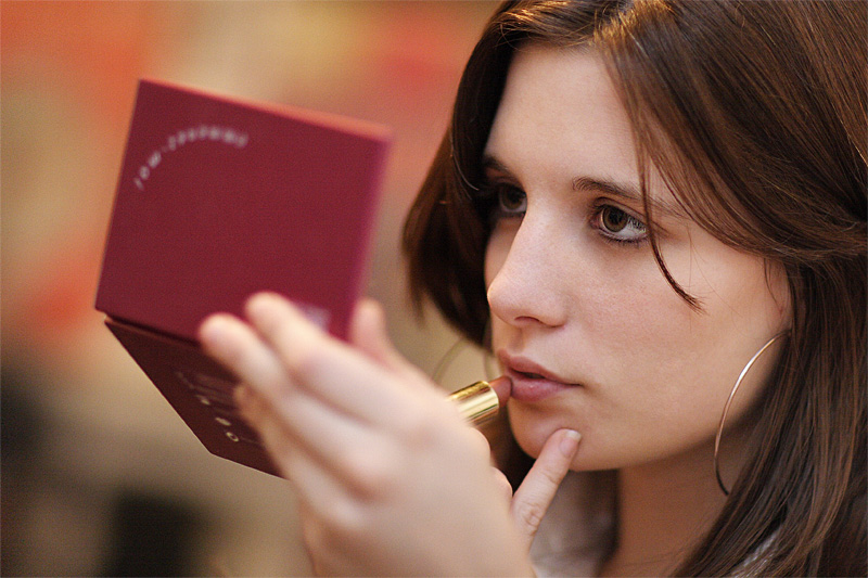 un ritratto rubato (almeno, mi pare....), ma gradevole nel complesso. l'unica cosa che avrei voluto, è un maggior visibilità verso il basso comprendendo la mano che tiene lo specchietto, fino a comprendere pure il polso. ma è bella pur così: trasmette bene il fascino intrinseco del soggetto. bravo.