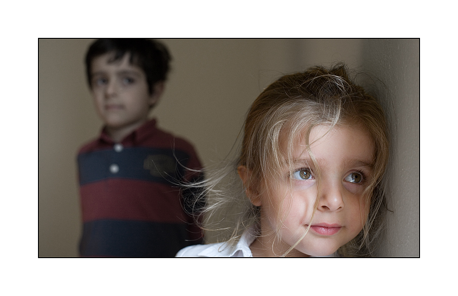 Il ragazzino in sfondo non è distinguibile perfettamente, ma la sua presenza ambienta la scena-ritratto... ci fa immaginare un prima e un dopo, un gioco possibile, un coinvolgimento nell'attimo fotografato.