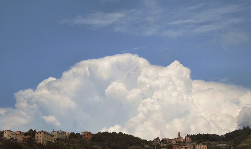 rende bene la sensazione di grandezza e maestosità questa nube, sembra avvolga le case della collina, piuttosto avrei tagliato un pochino più in basso, per far vedere un pochino di paesaggio in più, per meglio contestualizzarla.