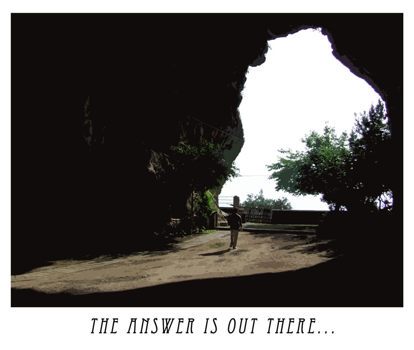 poi avrei preferito una pesante sottoesposizione per avere l'uomo solo come silhouette e l'interno della grotta nero. con l'esterno si chiaro ma non così tanto