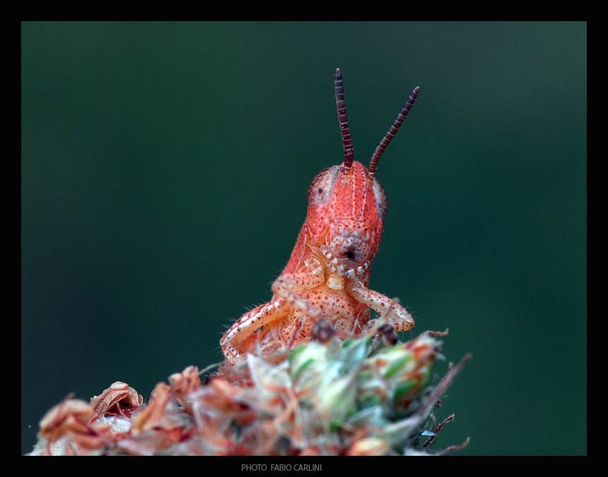 Resta da capire cos'è!!! Dalle antenne corte sembrerebbe una giovane locusta, ma rosse non ne ho mai viste...