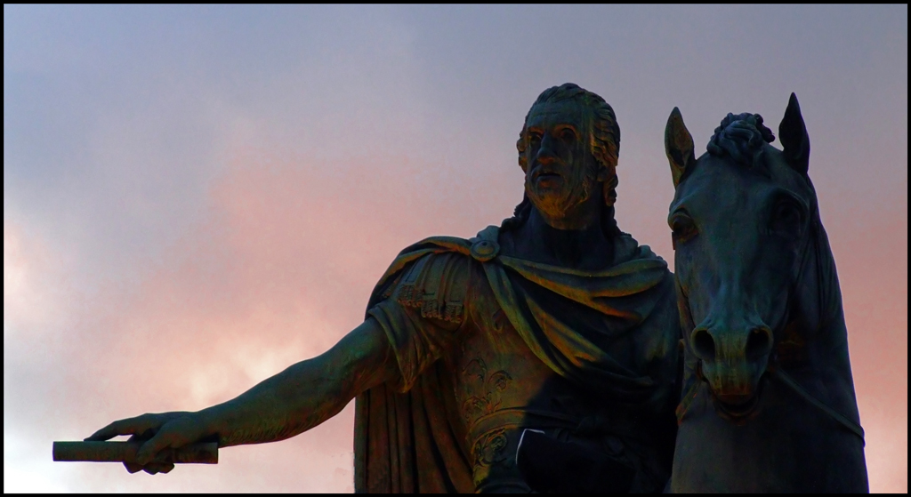 Non mi convince del tutto la luce: il cielo lo avrei visto un po' più contrastato, drammatico, però nel contempo vedo la statua un po' scura (l'occhio fatica un po' a trovar i dettagli, che ci sono).
