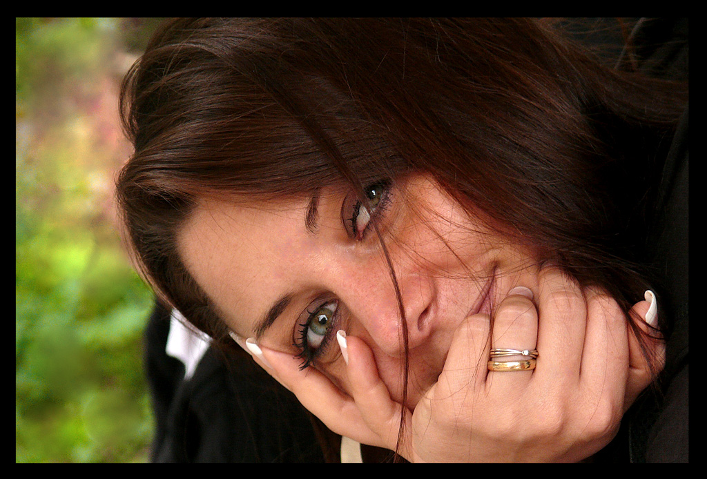 | bella foto, ben eseguita. bello il soggetto. l'unica cosa che mi viene da dirti e di fare attenzione alle unghie, soprattutto quella di destra. Essendo bianche e lunghe, richiamano molto l'attenzione. in modo particolare sono "fastidiose" quella già elencata e quella sotto l'occhio... |