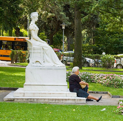A prescindere dal formato quadrangolare che non mi aggrada ma che forse è stato dovuto al crop di qualche elemento di disurbo credo che se avessi riditto la profondità di campo la composizione ne avrebbe guadagnato. Infatti troppi elementi distraggono dal centro dell'attenzione che è rappresentato dal soggetto e dalla statua.