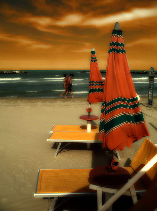 Diciamo che il cielo fa pendant con il colore delle sdraie e degli ombrelloni.