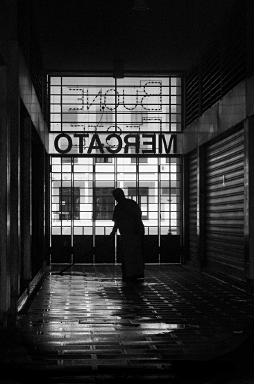 @ d'Annunzi0: pulizie pomeridiane dopo il giorno di mercato. La scritta secondo me può starci, in contrapposizione al lavoro nel buio!