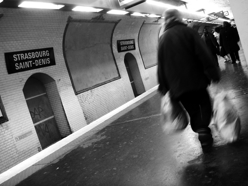 Era dicembre e mi trovavo a Parigi, faceva un freddo cane ed erano le 23.00 più o meno, mentre sono seduto là sotto con quel tanfo di pipì, mi accorgo che stà arrivando una persona con una scarpa completamente rotta , uscivano le dita. Era questo signore con le borse. lui incrocia il mio sguardo e quasi a scusarsi per la sua condizione , mi sorride timidamente e con un filo di luce mi di "Pardon" ... scusa.