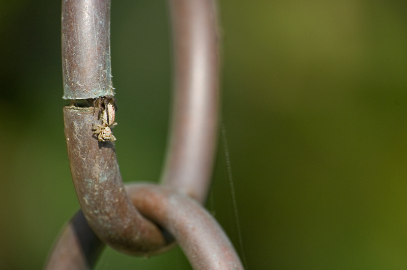 Come versioni alternative avrei provato con un bel taglio verticale per assecondare lo sviluppo della catena e anche una ripresa più di taglio per evidenziare meglio il ragnetto che sullo sfondo verde penso risalterebbe meglio che sulla catena su cui tende a mimetizzarsi un po'.