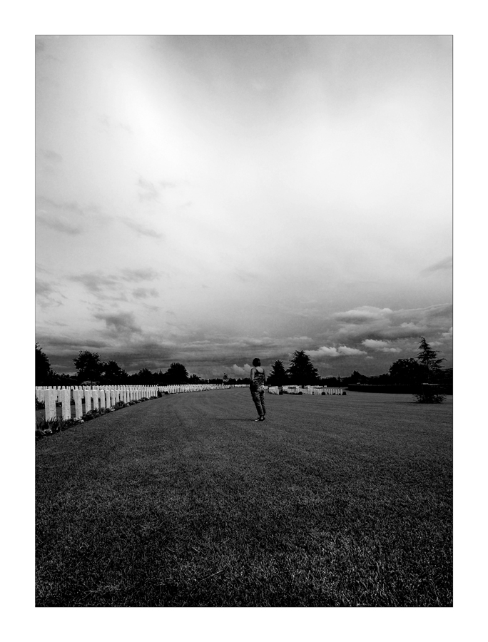 Mi limito soltanto a dirti che la figura umana, a mio avviso opportunamente inserita perchè sembra intenta osservare ed a meditare sulla inutile perdita di tante vite, poteva essere maggiormente decentrata a dx coì da lasciare spazio in direzione del suo sguardo verso le lapidi (spero sia un cimitero e non ho fatto una bruttissima gaffe). Ciao  _________________ Riccardo Bruno |