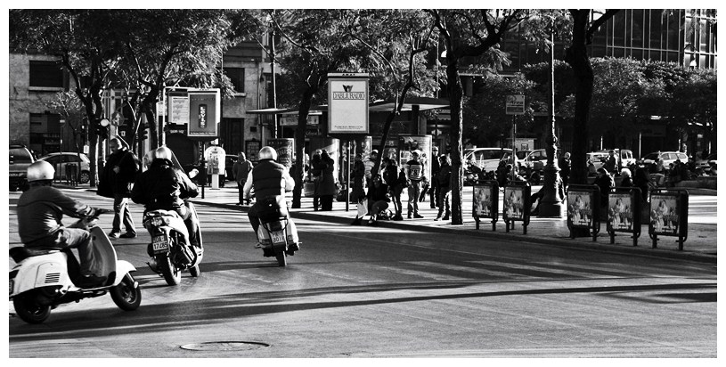 Una prova davvero deludente, visti altri scatti da voi (tu?) già postati in questa sezione. Impastato il b/n, poco leggibile il colore. Suppongo che abbiate voluto trasmettere la banalità dei giorni feriali a contrasto con il piacere di quello festivo, però le inquadrature del banale potevano allora essere ancora più banali e casuali, però tutte a fuoco e chiaramente leggibili, e l'inquadratura del finale domenicale più speciale e luminosa.