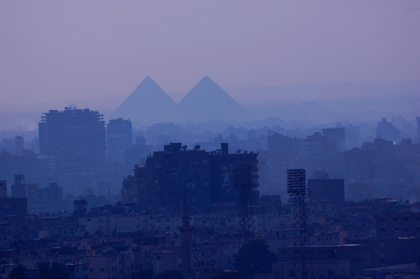 Partiamo dal lato positivo, un'immensa metropoli e sullo sfondo le magiche pirmamidi con quest'aria soffusa, uno scatto particolare