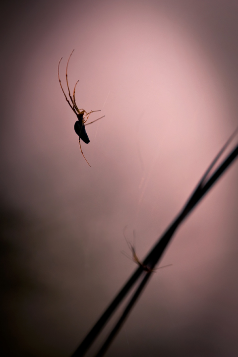 Se volevi ottenere una silhouette non la trovo particolarmente riuscita, secondo me i ragni non si prestano però i gusti son gusti. Non capisco cosa siano quelle linee ma le eliminerei perchè disturbano. Il colore sullo sfondo e la luce spot invece non sono male. Questo è il mio umile giudizio  _________________ Canon EOS 400D, EF 50 f/1.4, EF-S 10-22 f/3.5-4.5 |