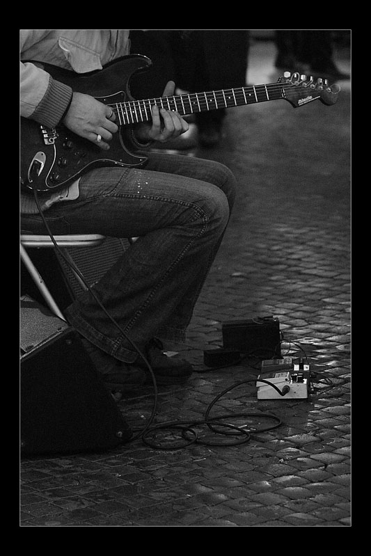 Concordo...è bello il momento di "pace" che il chitarrista si ritaglia nel caos della folla...rimangono solo le note della sua chitarra....e attorno silenzio..