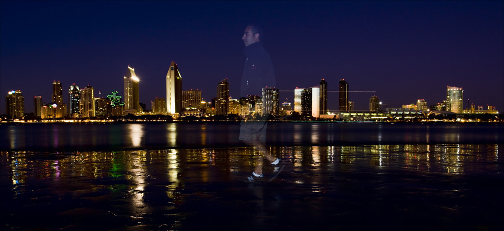 questa foto e' stata realizzata come sperimentazione all'utilizzo del flash in modo casuale, freddando il passaggio del soggetto con scatti a lunghe esposizioni, l'originale e' stato croppato essendo una panoramica estesa in modo da far risultare l'ombra quasi un gigante rispetto il fondo.