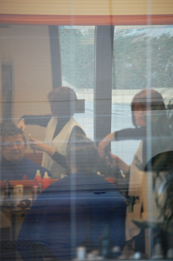 Peccato che non sei riuscito a render emaggiromente deliniati i tratti ed a rendere ben visibile lo sguardo in camera della donna e della parrucchiera che si sono sentite disturbate.
