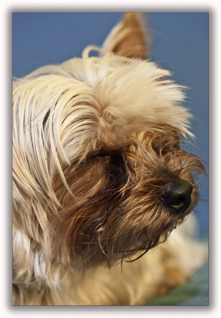 Bello scatto a questo dolcissimo cagnolino. Ottima la definizione del musetto e degli occhi, buona la luce. Mi piace. Complimenti per la prova e il risultato. Ok!