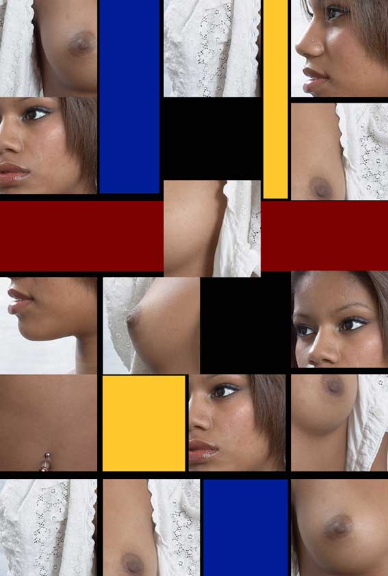 | concordo con e-fra e aggiungo che la foto "spezzettata" è poco nitida, inoltre non mi convince molto l'alternanza dei riquadri colorati con le parti della modella |