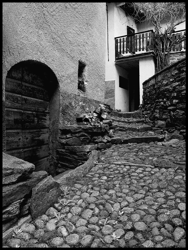 Il viottolo in primo piano, unendosi alla scala in una leggera curva verso sx, forma un percorso anche visivo che guida l' occhio dell' osservatore verso qualcosa.
